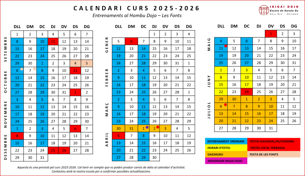 Horaris i Calendari d’Activitat del Karate Escolar